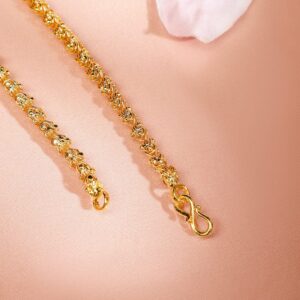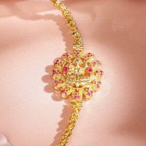 Necklace & Chains : A 22K gold-plated handcrafted long necklace, featuring a delicate beaded chain with a stunning ruby pink-studded floral side pendant. A perfect jewellery piece for weddings, festive occasions & traditional celebrations. Occasion : Bring your style to a whole new level with this handcrafted piece of jewelry. When you’re celebrating a weddings, festive occasions & traditional ceremonies, this piece adds that extra something that makes us feel special and looking our best. Material & Care Dimension : Length Size : Necklace : 30 cm Dimension : Width : Necklace : 3.5 cm Net Quantity : 1 Necklace Net Weight: 35.70 g Material : Brass Care Label : It is advisable to avoid contact with water and organic chemicals i.e. perfume sprays. Store jewellery in airtight box. After use, wipe the jewellery with soft cotton cloth.