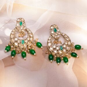 Jewellery Set: This 22K gold-plated handcrafted necklace set features white and green kundan stones, green drop beads, and off-white pearl beads. Includes earrings and crafted in premium brass material. Perfect for Traditional Events: Ideal for weddings, receptions, and festive occasions, this jewellery set pairs beautifully with sarees, lehengas, and ethnic gowns. Its handcrafted finish makes it a treasured piece in any bridal or festive wardrobe. Material : & Care Dimension : Length : Necklace : 11 cm ; Earrings : 6 cm ; MaangTikka : 15 cm Width : Necklace : 3 cm ; Earrings : 3 cm ; MaangTikka : 3.5 cm Net Weight : 90.81 Gram Material : Brass Net Quantity : 1 Necklace, 1 Pair of Earrings & 1 Maangtikka Care Label : It is advisable to avoid contact with water and organic chemicals i.e. perfume sprays. Store jewellery in airtight box. After use, wipe the jewellery with soft cotton cloth.