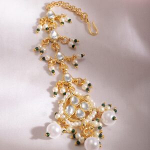 Head Jewellery : Jewellery Type: maang tikka Occasion : Bring your style to a whole new level with this handcrafted piece of jewellery. When you’re celebrating a special Occasion : – a birthday, wedding, or personal milestone – this piece adds that extra something that makes us feel special and looking our best. Material : & Care Dimension : Length : 8 cm, Width : 3 cm Material :Brass Care Label : It is advisable to avoid contact with water and organic chemicals i.e. perfume sprays. Store jewellery in airtight box. After use, wipe the jewellery with soft cotton cloth.