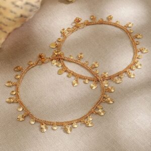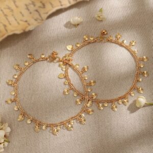 Product Details :Adorn your ankles with a touch of luxury using our exquisite 22K gold-plated linked chain anklet. This anklet is a symbol of timeless elegance, crafted with precision and designed to enhance the beauty of your every step. . Occasion : Bring your style to a whole new level with this handcrafted piece of jewellery. When you’re celebrating a special Occasion : – a birthday, wedding, or personal milestone – this piece adds that extra something that makes us feel special and looking our best. Material & Care Dimension : Adjustable Material :Brass Net Weight: 34.9 Gram Net Quantity: 1 Pair Of Anklet Care Label: It is advisable to avoid contact with water and organic chemicals i.e. perfume sprays. Store jewellery in airtight box. After use, wipe the jewellery with soft cotton cloth.