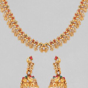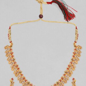 From minimalist to statement, our necklaces are multifaceted, always fashionable, and add a splash of personality to any wardrobe. Occasion : Bring your style to a whole new level with this handcrafted piece of jewellery. When you’re celebrating a special Occasion : – a birthday, wedding, or personal milestone – this piece adds that extra something that makes us feel special and looking our best. Material & Care Dimension : Size Necklace – 23 cm; Earrings – 3.4 cm Material : Brass Net Weight: 45 Gram Net Quantity: 1 Necklace & 1 Pair of Earrings Care Label: It is advisable to avoid contact with water and organic chemicals i.e. perfume sprays. Store jewellery in airtight box. After use, wipe the jewellery with soft cotton cloth.