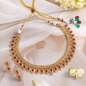 Necklace Set : Discover elegance with the Gold-Plated design, meticulously crafted for those who cherish luxury. This piece features precious stones for an eye-catching sparkle, making it perfect for special occasions. With a blend of high-quality materials and exquisite design, it promises both durability and style. The versatile look can complement a variety of outfits, adding a touch of sophistication. A must-have for enhancing your accessory collection with timeless elegance. Occasion : Bring your style to a whole new level with this handcrafted piece of jewellery. When you’re celebrating a special Occasion : – a birthday, wedding, or personal milestone – this piece adds that extra something that makes us feel special and looking our best. Material : & Care Dimension : Length : NS = 18 cm ; E = 2.4 cm, Width: NS = 1.8 cm ; E = 0.8 cm Material :Brass Care Label : It is advisable to avoid contact with water and organic chemicals i.e. perfume sprays. Store jewellery in airtight box. After use, wipe the jewellery with soft cotton cloth.