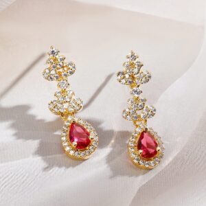 This 22K gold-plated brass necklace set features ruby pink teardrop and white cubic zirconia stones with matching earrings—ideal for parties, festive celebrations, and elegant special occasions. Occasion Styling: Ideal for festive gatherings, evening parties, cultural events, and special occasions. The modern classic design complements everything from elegant sarees to gowns and cocktail dresses. Material & Care Dimension : Length : Necklace: 10 cm ; Earrings : 1 cm Dimension : Width : Necklace : 3 cm ; Earrings: 1 cm Material : Brass Net Weight : 22.71 Gram Net Quantity : 1 Necklace & 1 Pair of Earrings Care Label : It is advisable to avoid contact with water and organic chemicals i.e. perfume sprays. Store jewellery in airtight box. After use, wipe the jewellery with soft cotton cloth