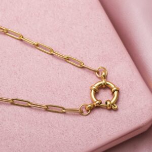 It’s a necklace for the queens! Exude the royal vibe with this AD studded necklace this necklace is crafted from Gold Plated brass, stones Occasion : Bring your style to a whole new level with this handcrafted piece of jewellery. When you’re celebrating a special Occasion : – a birthday, wedding, or personal milestone – this piece adds that extra something that makes us feel special and looking our best. Material & Care Length : Pendant Chain: 21 cm Material :Stainless Steel Collection : Gold Tone
