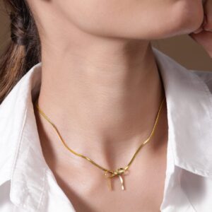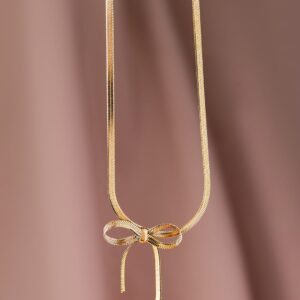 Be the first to review “22K Gold Plated Stainless Steel Tarnish-Free Waterproof Necklace with Minimal Bow Accent – Gold”