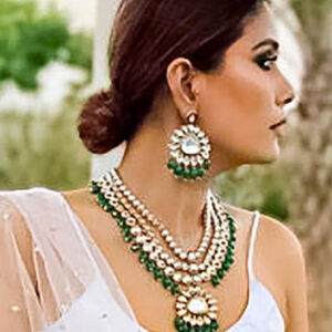 Be the first to review “22K Gold Plated White & Green Kundan Studded & Beaded Multilayered Jewellery Set – Pink & Meant Green”