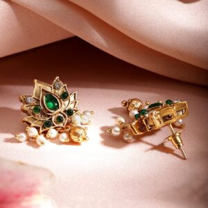 Jewellery Set: One of the most versatile forms of ornate designs that goes well with every style and personality. Wear one of these and you do not have to worry about any other accessory. Occasion : Bring your style to a whole new level with this handcrafted piece of jewellery. When you’re celebrating a special Occasion : – a birthday, wedding, or personal milestone – this piece adds that extra something that makes us feel special and looking our best. Material : & Care Dimension :Size : Necklace : 19 cm, Earrings : 4 cm Material: Brass Net Weight: 49.11 Gram Net Quantity: 1 Necklace & 1 Pair of Earrings Care Label: It is advisable to avoid contact with water and organic chemicals i.e. perfume sprays. Store jewellery in airtight box. After use, wipe the jewellery with soft cotton cloth.