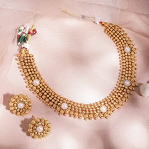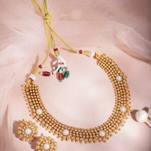 You can never go wrong with this classic piece of jewellery. With just the right amount of charm and style, it can take you from a busy day at work to an impromptu night out with colleagues or friends. Occasion : Bring your style to a whole new level with this handcrafted piece of jewellery. When you’re celebrating a special Occasion : a birthday, wedding, or personal milestone this piece adds that extra something that makes us feel special and looking our best. Material & Care Dimension :Size : Necklace : 20 cm, Earrings : 2 cm Material: Alloy Net Weight: 35.36 Gram Net Quantity: 1 Necklace & 1 Pair of Earrings Care Label: It is advisable to avoid contact with water and organic chemicals i.e. perfume sprays. Store jewellery in airtight box. After use, wipe the jewellery with soft cotton cloth.