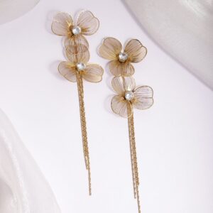 Earrings: One of the most versatile forms of ornate designs that goes well with every style and personality. Wear one of these and you do not have to worry about any other accessory. Occasion : Bring your style to a whole new level with this handcrafted piece of jewellery. When you’re celebrating a special Occasion : – a birthday, wedding, or personal milestone – this piece adds that extra something that makes us feel special and looking our best. Material : & Care Dimension :Length 10 cm Material :Brass Care Label : It is advisable to avoid contact with water and organic chemicals i.e. perfume sprays. Store jewellery in airtight box. After use, wipe the jewellery with soft cotton cloth.