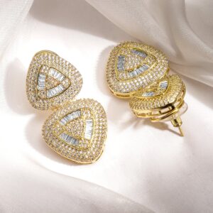 Earrings : Discover the elegance of 24 K Gold-Plated Aaa Cubic Zirconia Studded Premium Drop Earrings. This piece combines quality craftsmanship with a timeless design, making it perfect for any occasion. Elevate your style effortlessly and enjoy compliments on your refined taste. A must-have addition to your jewelry collection. Occasion : Bring your style to a whole new level with this handcrafted piece of jewellery. When you’re celebrating a special Occasion : – a birthday, wedding, or personal milestone – this piece adds that extra something that makes us feel special and looking our best. Material : & Care Dimension : Earrings Size :Length : 4.5 cm, Width : 2.5 cm Material: Alloy Net Weight: 14.07 Gram Net Quantity: 1 Pair of Earrings Care Label: It is advisable to avoid contact with water and organic chemicals i.e. perfume sprays. Store jewellery in airtight box. After use, wipe the jewellery with soft cotton cloth.