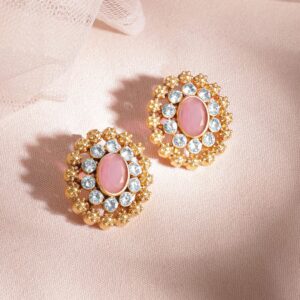 Be the first to review “24K Gold Plated Handcrafted Pastel Pink & White Cubic Zirconia Studded Choker Set – Pink”
