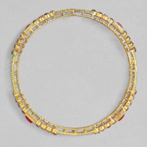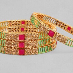 Adorn your wrist with finest handcrafted gold plated bangles studded with color stones. Pair it up and flaunt with your ethnic attire. Occasion : Bring your style to a whole new level with this handcrafted piece of jewellery. When you’re celebrating a special Occasion : – a birthday, wedding, or personal milestone – this piece adds that extra something that makes us feel special and looking our best. Material : & Care Material : Brass Care Label : It is advisable to avoid contact with water and organic chemicals i.e. perfume sprays. Store jewellery in airtight box