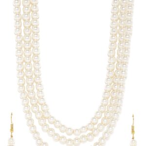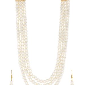 Elevate your charm with this opulent 3-layer pearl beaded necklace set, a fusion of grace and luxury that captivates every gaze Material & Care Dimension : Necklace – 24 cm ,Earrings – 4 cm Material : Brass Weight : 120g Net Qnty : 1 Necklace, 1 Pair of Earrings Care Label : It is advisable to avoid contact with water and organic chemicals i.e. perfume sprays. Store jewellery in airtight box. After use, wipe the jewellery with soft cotton cloth.
