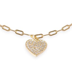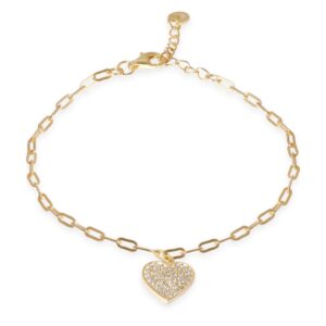 Be the first to review “925 Silver 18K Gold Plated Heart Pave Zirconia Charm Bracelet – Gold”