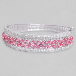 Adorn your wrist with finest Silver plated bracelets studded with zirconia stones. Pair it up and flaunt with your western attire. Occasion : Bring your style to a whole new level with this handcrafted piece of jewellery. When you’re celebrating a special Occasion : – a birthday, wedding, or personal milestone – this piece adds that extra something that makes us feel special and looking our best. Material & Care Dimension : Adjustable Collection : AD(Silver) Material: Brass Net Weight: 20 Gram Net Quantity: 1 Bracelet Care Label: It is advisable to avoid contact with water and organic chemicals i.e. perfume sprays. Store jewellery in airtight box. After use, wipe the jewellery with soft cotton cloth.