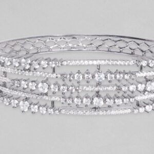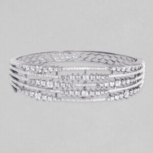Adorn your wrist with finest rose gold plated bracelets studded with zirconia stones. Pair it up and flaunt with your western attire. Occasion : Bring your style to a whole new level with this handcrafted piece of jewellery. When you’re celebrating a special Occasion : – a birthday, wedding, or personal milestone – this piece adds that extra something that makes us feel special and looking our best. Material & Care Dimension : Adjustable Collection : AD(Silver) Material: Brass Net Weight: 18.18 Gram Net Quantity: 1 Bracelet Care Label: It is advisable to avoid contact with water and organic chemicals i.e. perfume sprays. Store jewellery in airtight box. After use, wipe the jewellery with soft cotton cloth.