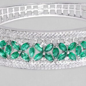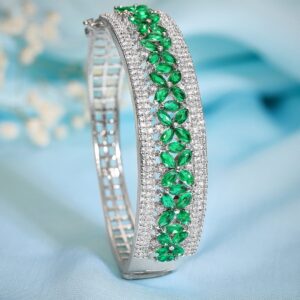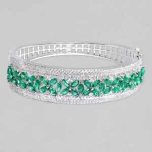 Adorn your wrist with finest rose gold plated bracelets studded with zirconia stones. Pair it up and flaunt with your western attire. Occasion : Bring your style to a whole new level with this handcrafted piece of jewellery. When you’re celebrating a special Occasion : – a birthday, wedding, or personal milestone – this piece adds that extra something that makes us feel special and looking our best. Material & Care Dimension : Onesize Collection : AD(Silver) Material: Brass Net Weight: 22.46 Gram Net Quantity: 1 Bracelet Care Label: It is advisable to avoid contact with water and organic chemicals i.e. perfume sprays. Store jewellery in airtight box. After use, wipe the jewellery with soft cotton cloth.