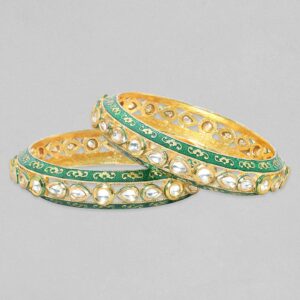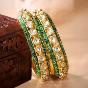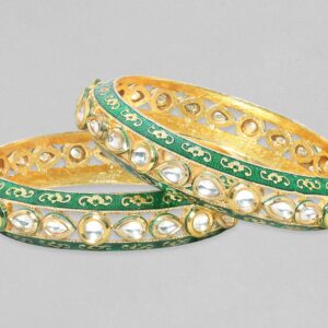Be the first to review “As Seen On Adah Sharma – 24K Gold Plated Kundan Studded Green Enamel Bangles – Gold::Green / 2.6”