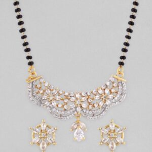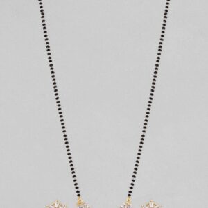 Sometimes a necklace makes an outfit. At times its just a classic design for everyday wear Occasion : Bring your style to a whole new level with this handcrafted piece of jewellery. When you’re celebrating a special Occasion : – a birthday, wedding, or personal milestone – this piece adds that extra something that makes us feel special and looking our best. Material & Care Dimension :Length 12.9 cm : Earrings: 2.1 cm Material: Brass Net Weight: 55 Gram Net Quantity: 1 Mangalsutra & 2 Earrings Care Label: It is advisable to avoid contact with water and organic chemicals i.e. perfume sprays. Store jewellery in airtight box. After use, wipe the jewellery with soft cotton cloth.