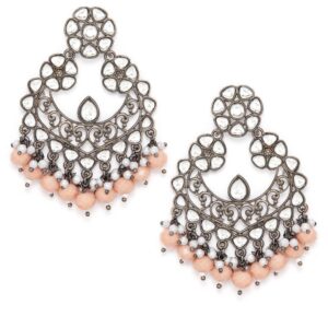 Chandbali Earrings One of the most versatile forms of ornate designs that goes well with every style and personality. Wear one of these and you don‚Äôt have to worry about any other accessory. Occasion : Bring your style to a whole new level with this handcrafted piece of jewellery. When you’re celebrating a special Occasion : – a birthday, wedding, or personal milestone – this piece adds that extra something that makes us feel special and looking our best. Material : & Care Dimension : Length 7 cm¬† Material : Brass brass Care Label : It is advisable to avoid contact with water and organic chemicals i.e. perfume sprays. Store jewellery in airtight box. After use, wipe the jewellery with soft cotton cloth.