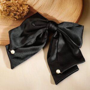 Hair Accessory : black satin bow hair clip with pearl drop detailing adds a touch of sophistication to any hairstyle. Crafted from smooth satin, this elegant accessory enhances your look effortlessly. Occasion : Bring your style to a whole new level with this handcrafted piece of jewellery. When you’re celebrating a special Occasion : – a birthday, wedding, or personal milestone – this piece adds that extra something that makes us feel special and looking our best. Material : & Care Dimension : Size : Length : 20 cm, Width : 1.6 cm Net Weight: 36.40 g Net Quantity : Hair Accessory Material :Metal Care Label : It is advisable to avoid contact with water and organic chemicals i.e. perfume sprays. Store jewellery in airtight box. After use, wipe the jewellery with soft cotton cloth.