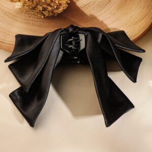 Hair Accessory : black satin layered bow hair clip adds a touch of sophistication with its voluminous design. The rich satin fabric and strong clip provide a secure and stylish hold, making it a perfect statement piece. Occasion : Bring your style to a whole new level with this handcrafted piece of jewellery. When you’re celebrating a special Occasion : – a birthday, wedding, or personal milestone – this piece adds that extra something that makes us feel special and looking our best. Material : & Care Dimension : Size : Length : 15 cm, Width : 7 cm Net Weight: 43.98 g Net Quantity : Hair Accessory Material :Metal Care Label : It is advisable to avoid contact with water and organic chemicals i.e. perfume sprays. Store jewellery in airtight box. After use, wipe the jewellery with soft cotton cloth.