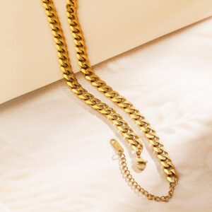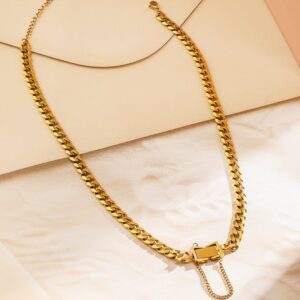 Chain & Necklace : This 18K gold-plated Cuban chain necklace exudes bold elegance with a statement lock closure design. Crafted in stainless steel, it’s tarnish-free & waterproof, perfect for daily wear & layering. Occasion : Bring your style to a whole new level with this handcrafted piece of jewellery. When you’re celebrating a special Occasion : – a birthday, wedding, or personal milestone – this piece adds that extra something that makes us feel special and looking our best. Material : & Care Dimension : Size : Length : 24 cm, Width : 1.7 cm Net Weight: 32.90 g Net Quantity : 1 Chain & Necklace Material :Stainless Steel Care Label : It is advisable to avoid contact with water and organic chemicals i.e. perfume sprays. Store jewellery in airtight box. After use, wipe the jewellery with soft cotton cloth.