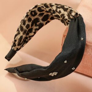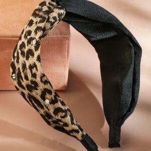 Brown & Leopard Print Twisted Headband with Embellished Crystal Detailing – Brown