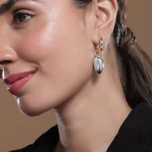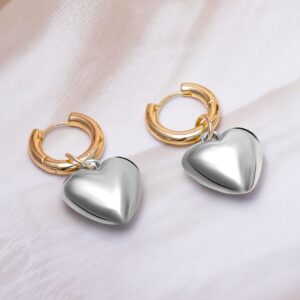 Earrings : These stylish hoop earrings feature a unique dual-plating design with a luxurious gold hoop paired with a chic silver heart charm. The combination of gold and silver tones creates a versatile and elegant look, perfect for adding a touch of romance and sophistication to any outfit. These earrings are an exquisite addition to your jewelry collection, offering both charm and modern appeal. Occasion : Bring your style to a whole new level with this handcrafted piece of jewellery. When you’re celebrating a special Occasion : – a birthday, wedding, or personal milestone – this piece adds that extra something that makes us feel special and looking our best. Material : & Care Dimension : Size : Length : 4.5 cm, Width : 2.5 cm Material :Brass Care Label : It is advisable to avoid contact with water and organic chemicals i.e. perfume sprays. Store jewellery in airtight box. After use, wipe the jewellery with soft cotton cloth.