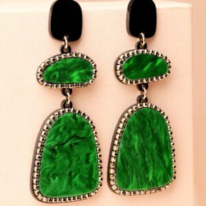 Be the first to review “Emerald Green Crystal Marble Stone & Black Studded Long Statement Dangle Drop Earrings – Green & Black”