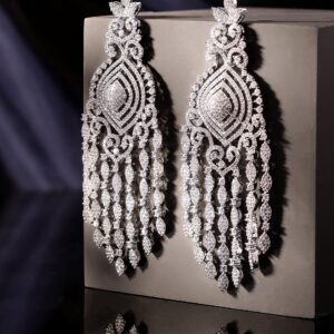 Be the first to review “Ethereal Sparkle Rhodium Plated Zirconia Studded Chandelier Earrings – Silver”