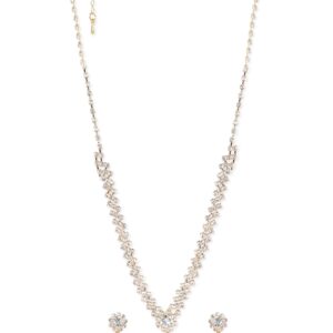 This jewellery set is not only a celebration of beauty but also a symbol of enduring style. Whether it’s a cherished gift for a loved one or a treat for yourself, our “Gleaming Elegance” Gold-Tone Zircon Jewellery Set is the epitome of sophistication and allure. Elevate your ensemble and radiate confidence with this statement-making treasure. Material & Care Dimension : Necklace Length: 25 cm Earrings Length: 3.5 cm Material : Alloy Care Label : It is advisable to avoid contact with water and organic chemicals i.e. perfume sprays. Store jewellery in airtight box. After use, wipe the jewellery with soft cotton cloth.