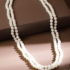 Necklace and Chains : Elevate your style with this exquisite multi-layer pearl necklace, a symbol of grace and sophistication. Featuring lustrous, perfectly round pearls in cascading layers, this piece embodies timeless beauty. Ideal for weddings, evening events, or adding a touch of luxury to your everyday look. A must-have for every jewelry collection! Occasion : Bring your style to a whole new level with this handcrafted piece of jewellery. When you’re celebrating a special Occasion : – a birthday, wedding, or personal milestone – this piece adds that extra something that makes us feel special and looking our best. Material : & Care Dimension : Size : Length : 150 cm, Width: 1 cm Net Weight: 30g Net Quantity : 1 Necklace Material : Care Label : It is advisable to avoid contact with water and organic chemicals i.e. perfume sprays. Store jewellery in airtight box. After use, wipe the jewellery with soft cotton cloth.