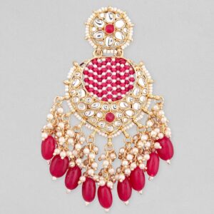 Chandbali Earrings You can never go wrong with this classic piece of jewellery. With just the right amount of charm and style, it can take you from a busy day at work to an impromptu night out with colleagues or friends. Occasion : Bring your style to a whole new level with this handcrafted piece of jewellery. When you’re celebrating a special Occasion : – a birthday, wedding, or personal milestone – this piece adds that extra something that makes us feel special and looking our best. Material : & Care Dimension :Length 10 cm Material : Brass Collection : Kundan(Gold) Weight : 20g Net Qnty : 1 Pair Earrings Care Label : It is advisable to avoid contact with water and organic chemicals i.e. perfume sprays. Store jewellery in airtight box. After use, wipe the jewellery with soft cotton cloth.