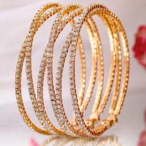 Bracelet : This exquisite piece, ‘ Gold-Plated Cubic Zirconia Stone Studded Cuff Bracelet’, is a perfect blend of elegance and craftsmanship. Designed to captivate, it reflects timeless beauty and intricate detailing. Ideal for special occasions, this accessory adds a touch of sophistication to your look. Made with high-quality materials, it guarantees durability and comfort. Elevate your style with this stunning creation, making you stand out effortlessly. Occasion : Bring your style to a whole new level with this handcrafted piece of jewellery. When you’re celebrating a special Occasion : – a birthday, wedding, or personal milestone – this piece adds that extra something that makes us feel special and looking our best. Material : & Care Dimension : Adjustable Material : Brass Weight : 22.5 g Net Qnty : 1 Bracelet Care Label : It is advisable to avoid contact with water and organic chemicals i.e. perfume sprays. Store jewellery in airtight box. After use, wipe the jewellery with soft cotton cloth.