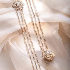 Earrings : Gold-toned classic drop earrings, gold-plated, has cubic zirconia Secured with a post and back closure Occasion : Bring your style to a whole new level with this handcrafted piece of jewellery. When you’re celebrating a special Occasion : – a birthday, wedding, or personal milestone – this piece adds that extra something that makes us feel special and looking our best. Material : & Care Dimension : Length : 19 cm, Width: 2.9 cm Net Weight: 24 Net Quantity : 1 Pair Of Earrings Material :Brass Care Label : It is advisable to avoid contact with water and organic chemicals i.e. perfume sprays. Store jewellery in airtight box. After use, wipe the jewellery with soft cotton cloth.