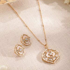 Jewellery Set: One of the most versatile forms of ornate designs that goes well with every style and personality. Wear one of these and you do not have to worry about any other accessory. Occasion : Bring your style to a whole new level with this handcrafted piece of jewellery. When you’re celebrating a special Occasion : – a birthday, wedding, or personal milestone – this piece adds that extra something that makes us feel special and looking our best. Material : & Care Dimension :Pendant : 28 cm, Earrings : 4.5 cm Material :Brass Weight : 17.56g Net Qnty : 1 Necklace, 1 Pair of Earrings Care Label : It is advisable to avoid contact with water and organic chemicals i.e. perfume sprays. Store jewellery in airtight box. After use, wipe the jewellery with soft cotton cloth.
