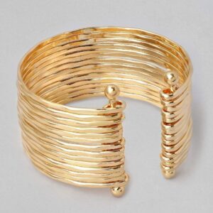 Adorn your wrist with finest handcrafted gold plated bangles studded with colorstones. Pair it up and flaunt with your ethnic attire. Occasion : Bring your style to a whole new level with this handcrafted piece of jewellery. When you’re celebrating a special Occasion : – a birthday, wedding, or personal milestone – this piece adds that extra something that makes us feel special and looking our best. Material : & Care Dimension :¬†Adjustable Material : ¬†Alloy Plating :¬† Gold Plated Care Label : It is advisable to avoid contact with water and organic chemicals i.e. perfume sprays. Store jewellery in airtight box. After use, wipe the jewellery with soft cotton cloth.