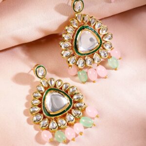 Necklace set: One of the most versatile forms of ornate designs that goes well with every style and personality. Wear one of these and you do not have to worry about any other accessory. Occasion : Bring your style to a whole new level with this handcrafted piece of jewellery. When you’re celebrating a special Occasion : – a birthday, wedding, or personal milestone – this piece adds that extra something that makes us feel special and looking our best. Material : & Care Dimension :Size : Necklace : 48 cm, Earrings : 7.5 cm Material :Brass Care Label : It is advisable to avoid contact with water and organic chemicals i.e. perfume sprays. Store jewellery in airtight box. After use, wipe the jewellery with soft cotton cloth.
