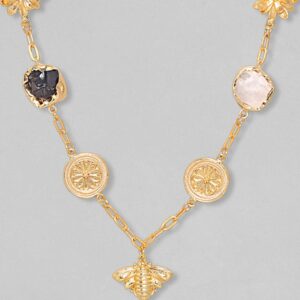It’s a necklace for the queens! Exude the royal vibe with gold plated brass, pearl, beads and stones. Occasion : Bring your style to a whole new level with this handcrafted piece of jewellery. When you’re celebrating a special Occasion : – a birthday, wedding, or personal milestone – this piece adds that extra something that makes us feel special and looking our best. Material & Care Dimension : Necklace 48 cm; Earring 1.5 cm: Collection : Gold Tone Material: Brass Net Weight: 15 Gram Net Quantity: 1 Necklace Care Label: It is advisable to avoid contact with water and organic chemicals i.e. perfume sprays. Store jewellery in airtight box. After use, wipe the jewellery with soft cotton cloth.
