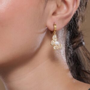 Earrings : 18K gold-plated stainless steel butterfly drop earrings featuring a central pearl stud and sparkling cubic zirconia accents. Tarnish-free and waterproof, these elegant earrings offer a blend of classic charm and modern sophistication. Occasion : Bring your style to a whole new level with this handcrafted piece of jewellery. When you’re celebrating a special Occasion : – a birthday, wedding, or personal milestone – this piece adds that extra something that makes us feel special and looking our best. Material : & Care Dimension : Size : Length : 3.5 cm, Width : 1.5 cm Material :Stainless steel Care Label : It is advisable to avoid contact with water and organic chemicals i.e. perfume sprays. Store jewellery in airtight box. After use, wipe the jewellery with soft cotton cloth.