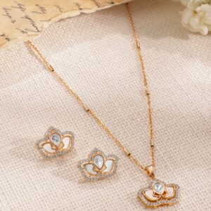 Jewellery Set: One of the most versatile forms of ornate designs that goes well with every style and personality. Wear one of these and you do not have to worry about any other accessory. Occasion : Bring your style to a whole new level with this handcrafted piece of jewellery. When you’re celebrating a special Occasion : – a birthday, wedding, or personal milestone – this piece adds that extra something that makes us feel special and looking our best. Material : & Care D imension :Pendant : 28 cm, Earrings : 4 cm Material :Brass Weight : 8.72g Net Qnty : 1 Necklace, 1 Pair of Earrings Care Label : It is advisable to avoid contact with water and organic chemicals i.e. perfume sprays. Store jewellery in airtight box. After use, wipe the jewellery with soft cotton cloth.
