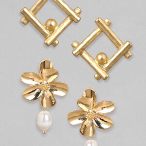 “Enhance your earring collection with our contemporary pieces,These earrings offer versatile style options, from sleek and minimal to bold and expressive. Elevate your everyday look or make a statement on special occasions with this curated set.” Occasion : Bring your style to a whole new level with this handcrafted piece of jewellery. When you’re celebrating a special Occasion : – a birthday, wedding, or personal milestone – this piece adds that extra something that makes us feel special and looking our best. Material & Care Length : 3.5 cm Material : Brass Weight : 16.59g Net Qnty : 2 Pair Earrings Care Label : It is advisable to avoid contact with water and organic chemicals i.e. perfume sprays. Store jewellery in airtight box. After use, wipe the jewellery with soft cotton cloth.