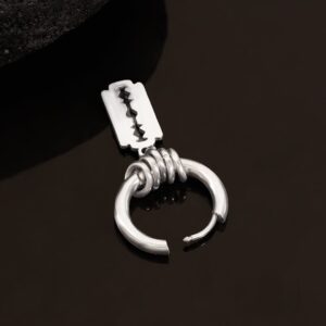 Earrings : Elevate your edgy style with this men’s stainless steel earring featuring a sleek razor blade charm. Its silver-plated finish is tarnish-free and waterproof, ensuring lasting durability and bold appeal. Occasion : Bring your style to a whole new level with this handcrafted piece of jewellery. When you’re celebrating a special Occasion : – a birthday, wedding, or personal milestone – this piece adds that extra something that makes us feel special and looking our best. Material : & Care Dimension : Size : Length : 3.5 cm, Width : 0.7 cm Material :Stainless Steel Net Weight: 2.75 Gram Net Quantity: 1 Earrings Care Label : It is advisable to avoid contact with water and organic chemicals i.e. perfume sprays. Store jewellery in airtight box. After use, wipe the jewellery with soft cotton cloth.