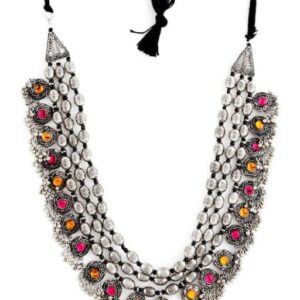 From minimalist to statement, our necklaces are multifaceted, always fashionable, and add a splash of personality to any wardrobe. Occasion : Bring your style to a whole new level with this handcrafted piece of jewellery. When you’re celebrating a special Occasion : – a birthday, wedding, or personal milestone – this piece adds that extra something that makes us feel special and looking our best. Material : & Care Dimension : Length : 28 cm Material: Oxidized Net Weight: 125 Gram Net Quantity: 1 Necklace Care Label : It is advisable to avoid contact with water and organic chemicals i.e. perfume sprays. Store jewellery in airtight box. After use, wipe the jewellery with soft cotton cloth.