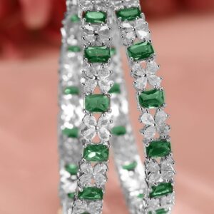 Bangle : This exquisite piece, ‘ PAck Of 2 Rhodium Plated CZ Studded Bangle’, is a perfect blend of elegance and craftsmanship. Designed to captivate, it reflects timeless beauty and intricate detailing. Ideal for special occasions, this accessory adds a touch of sophistication to your look. Made with high-quality materials, it guarantees durability and comfort. Elevate your style with this stunning creation, making you stand out effortlessly. Occasion : Bring your style to a whole new level with this handcrafted piece of jewellery. When you’re celebrating a special Occasion : – a birthday, wedding, or personal milestone – this piece adds that extra something that makes us feel special and looking our best. Material : & Care Material: Brass Net Weight: 42.75 Gram Net Quantity: 2 Bangles Care Label : It is advisable to avoid contact with water and organic chemicals i.e. perfume sprays. Store jewellery in airtight box. After use, wipe the jewellery with soft cotton cloth.