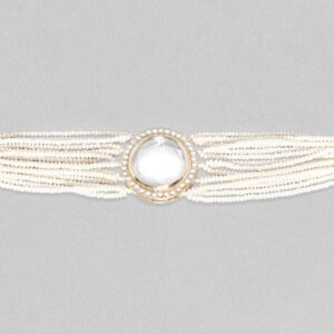 Be the first to review “Pearls With Kundan Work Traditional Bracelet – Gold::White”