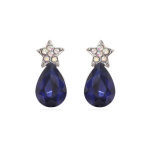 These petite studs feature a captivating blue stone, reminiscent of a twinkling star. The timeless design and comfortable fit make them perfect for everyday wear. Occasion : Bring your style to a whole new level with this handcrafted piece of jewellery. When you’re celebrating a special Occasion : – a birthday, wedding, or personal milestone – this piece adds that extra something that makes us feel special and looking our best. Material & Care Length : 2 cm Material : Alloy Weight : 6.78g Net Qnty : 1 Pair Earrings Care Label : It is advisable to avoid contact with water and organic chemicals i.e. perfume sprays. Store jewellery in airtight box. After use, wipe the jewellery with soft cotton cloth.