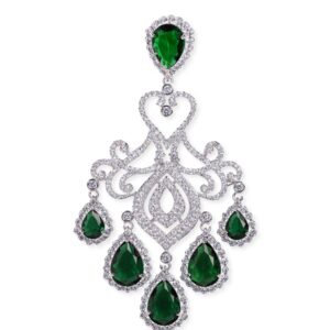 Elevate your elegance with our Premium Rhodium-plated AAA Cubic Zirconia Emerald Green Statement Chandelier Earrings. The exquisite design features brilliant emerald green stones that sparkle with sophistication. Perfect for special occasions, these short-length earrings make a bold and glamorous statement, adding a touch of luxury to any ensemble Occasion : Bring your style to a whole new level with this handcrafted piece of jewellery. When you’re celebrating a special Occasion : – a birthday, wedding, or personal milestone – this piece adds that extra something that makes us feel special and looking our best. Material : & Care Dimension :Length 9 cm Collection : AD Material: Brass Net Weight: 55.28 Gram Net Quantity: 1 Pair of Earrings Care Label: It is advisable to avoid contact with water and organic chemicals i.e. perfume sprays. Store jewellery in airtight box. After use, wipe the jewellery with soft cotton cloth.