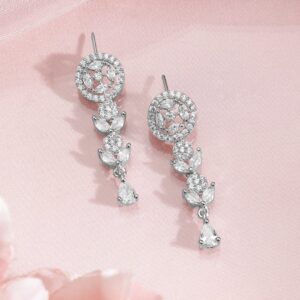 This premium rhodium plated necklace set features dazzling white cubic zirconia stones intricately arranged in a beautiful floral design. The necklace is complemented by matching drop earrings, each adorned with sparkling cubic zirconia accents. Perfect for special occasions, this high-quality set offers timeless beauty and a touch of glamour. Crafted with precision and care, it promises durability and lasting elegance, making it a treasured addition to your jewelry collection. Material : & Care Dimension : Size : Necklace : 16 cm, Earrings : 3 cm Material :Brass Care Label : It is advisable to avoid contact with water and organic chemicals i.e. perfume sprays. Store jewellery in airtight box. After use, wipe the jewellery with soft cotton cloth.